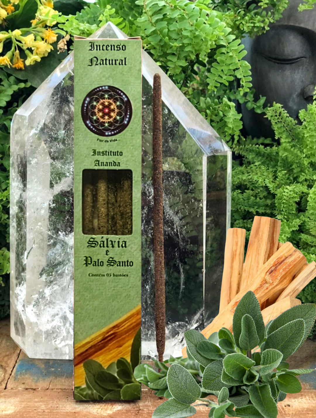 A mistura de palo santo com sálvia cria um aroma que limpa e acalma a mente.